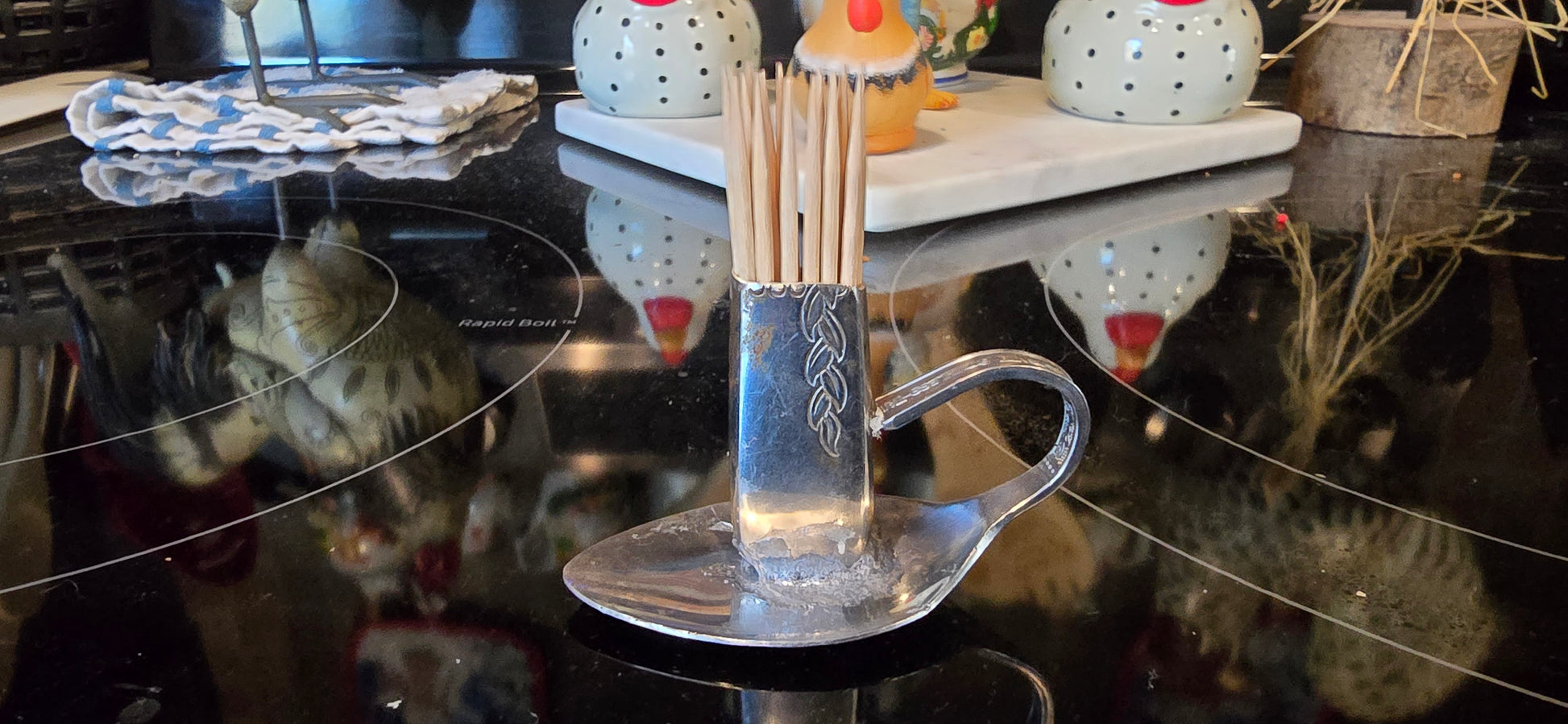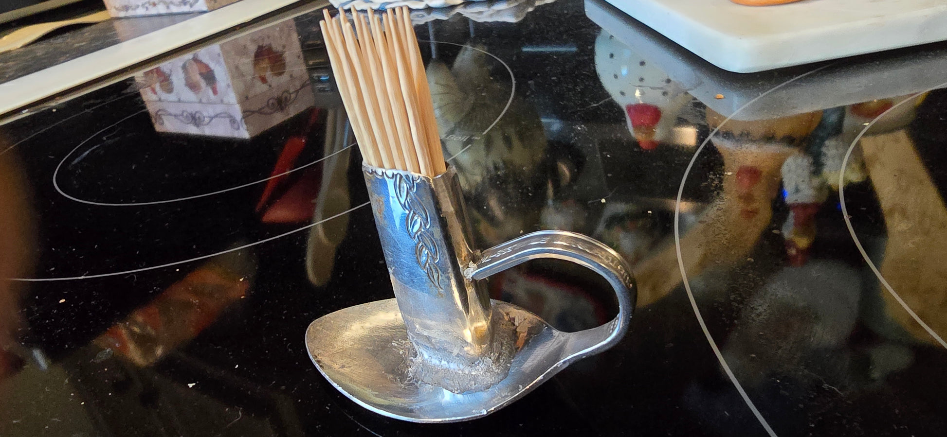 This stunning handcrafted toothpick holder is more than just a functional item, it's a timeless treasure that adds elegance to your home decor. Made from repurposed silverplate silverware, it combines beauty with practicality. Elevate your dining experience with Elagence meets functionality!
