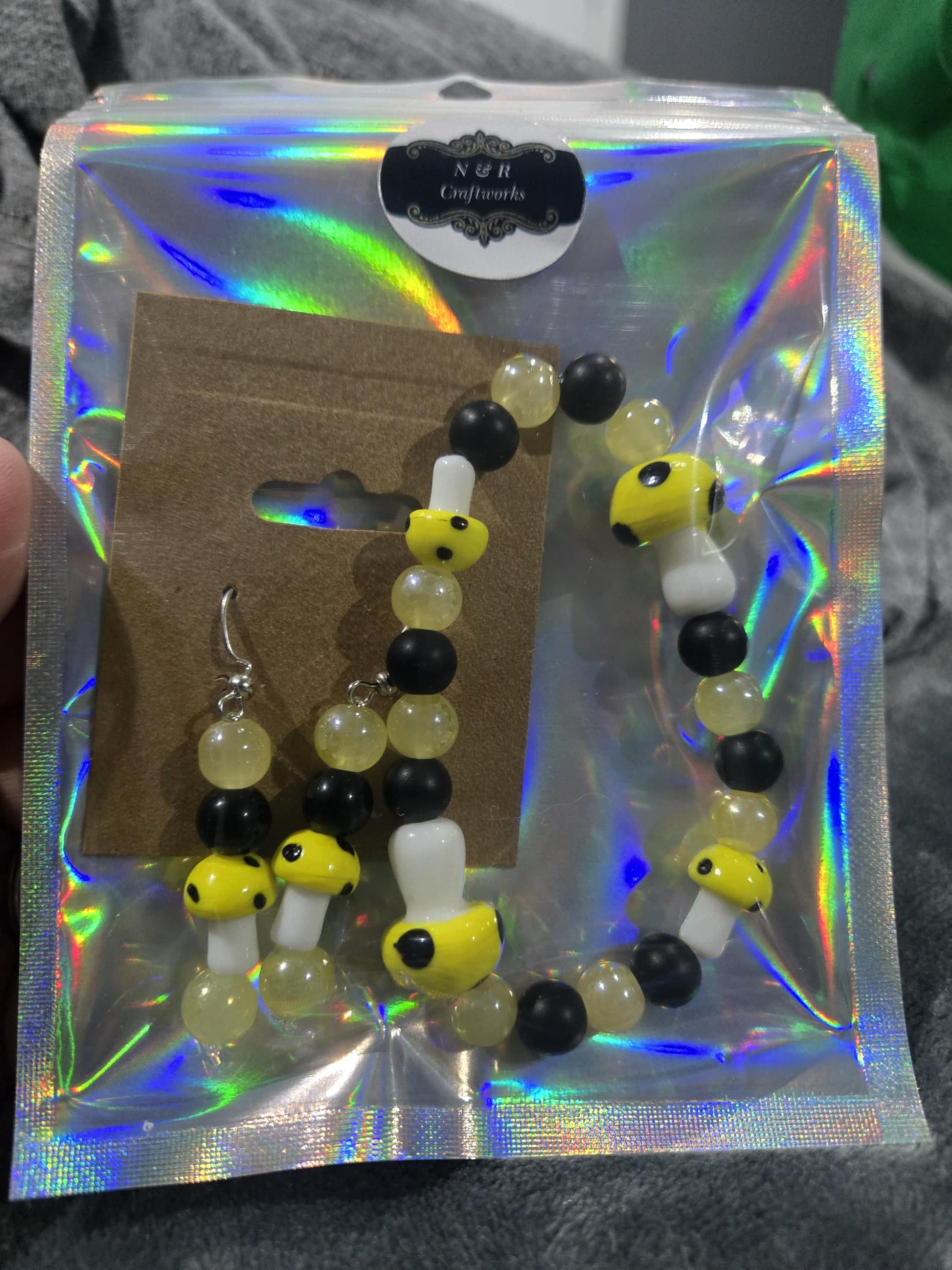 Discover the perfect accessory to elevate your style with this glass beads bracelet and earring set. Made with high-quality glass beads, this bundle offers a unique and elegant touch to any outfit. Enhance your look with this stylish and versatile set.