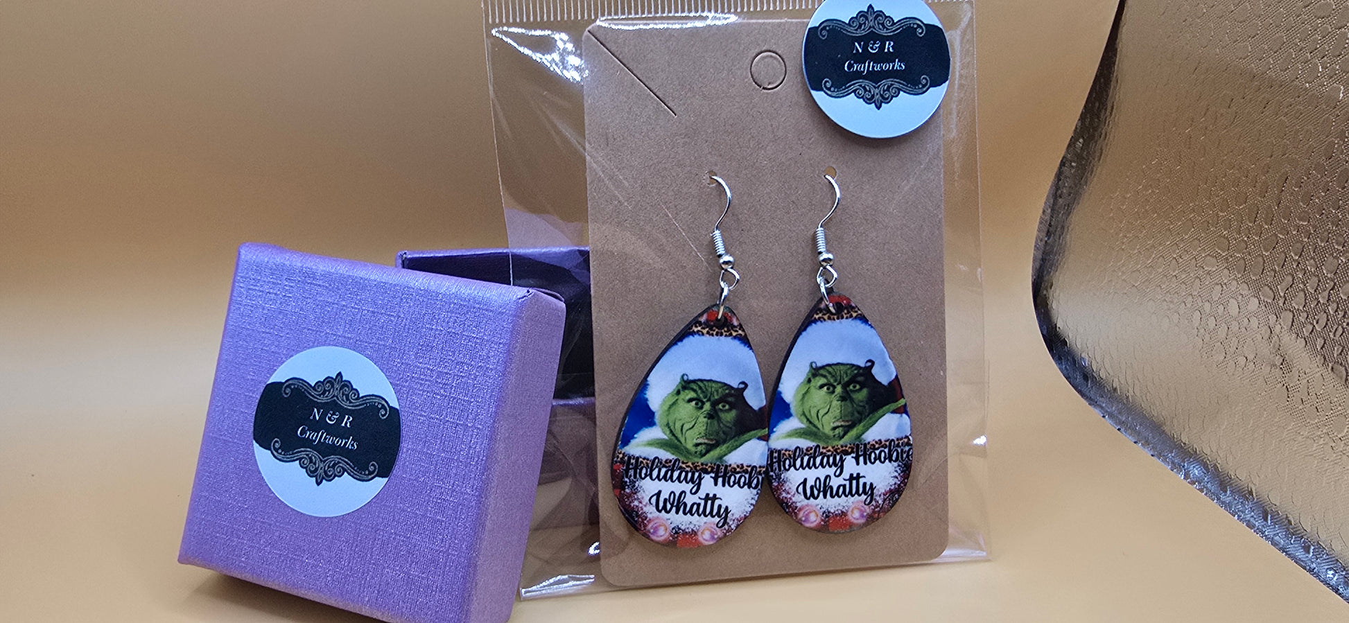 Elevate your holiday wardrobe with the Holiday Hobbie Whatty teardrop earrings—a truly one-of-a-kind statement piece that captures the Grinch's mischievous charm. These whimsical, sublimated earrings blend festive spirit with playful humor, making them the perfect gift for anyone who loves Christmas with a twist. Their unique design ensures you'll stand out at every holiday gathering, while the lightweight teardrop shape offers all-day comfort. Don't settle for ordinary seasonal accessories—choose earrings that reflect your bold, fun-loving personality and spark joy wherever you go.