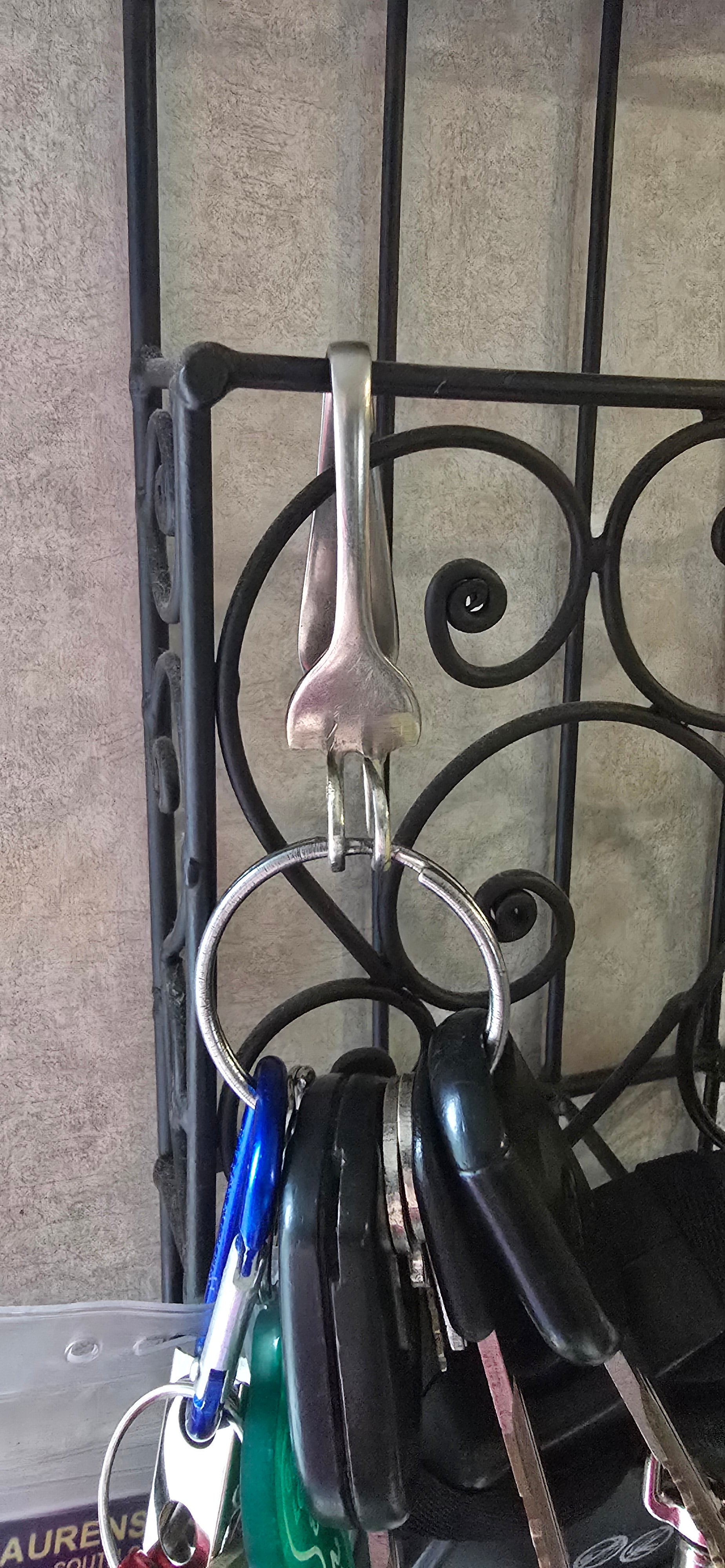 Elevate your keychain game with our Silverplated Fork Key Holder! Perfect for on-the-go, this unique piece is both classy and functional. Plus, it fits easily in your purse or pocket. Made from an actual fork, it's sure to catch some attention. Don't settle for a boring keychain, upgrade to this eye-catching accessory.