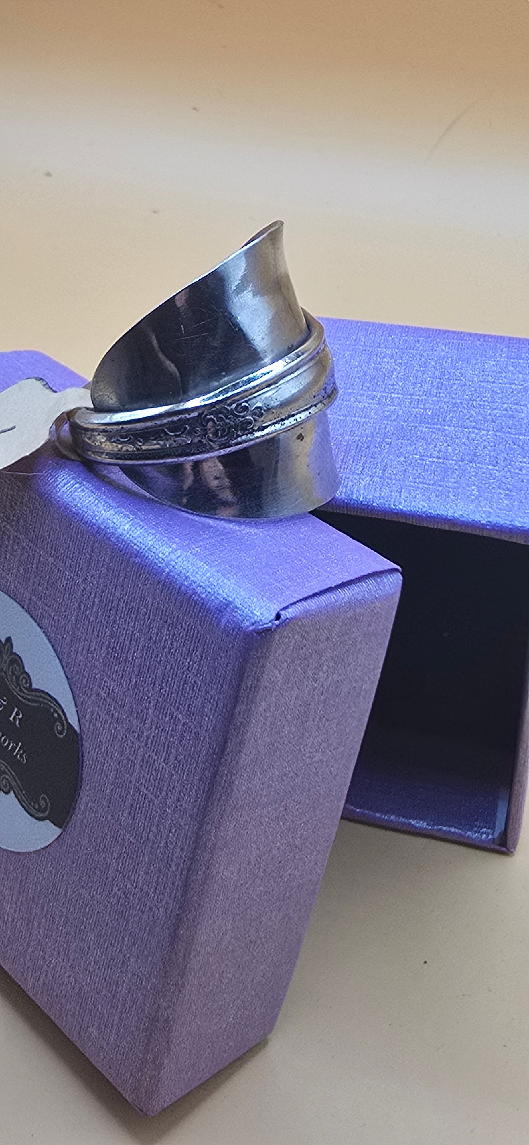 Who says your grandmother's silverware has to stay in the drawer? This delightful saddle ring gives vintage sterling silver spoons a second life as wearable art. Elegant, charming, and wonderfully unique, it's the kind of piece that sparks conversations and smiles. Perfect for those who love a touch of whimsy with their sophistication, this ring transforms dining room nostalgia into everyday magic. Build your own heirloom story—one that's meant to be worn, treasured, and passed down with pride and a knowing wink.