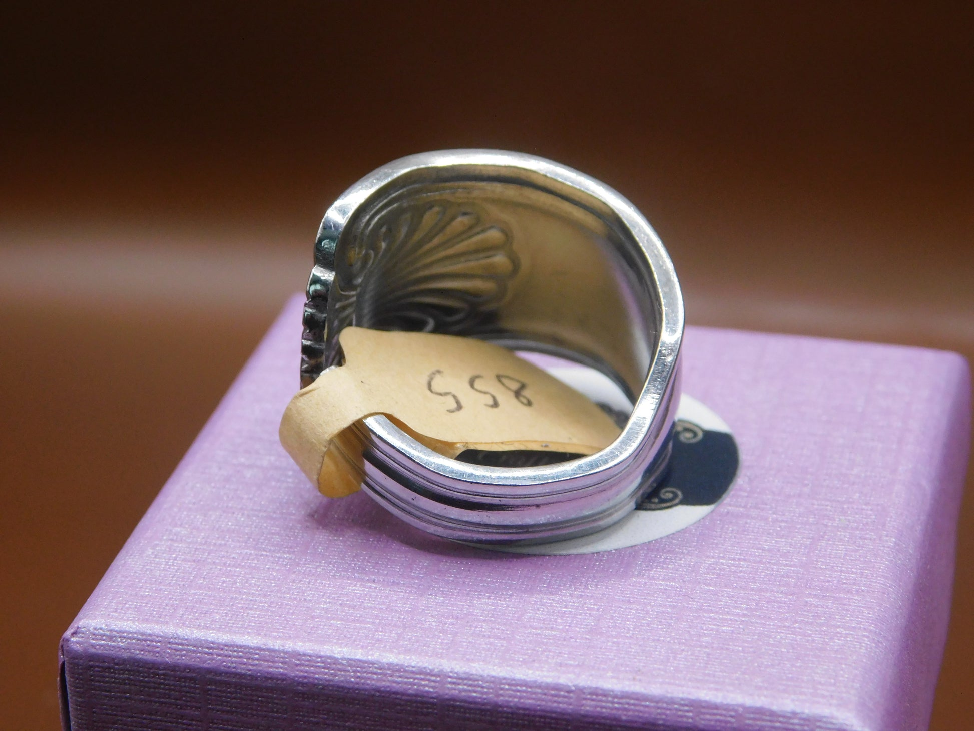 This exquisitely crafted silver-plated spoon ring transforms a functional item into a timeless piece of wearable art. Its sleek and elegant design offers a unique statement accessory, blending fashion with history. Perfect from everyday wear to special occasions, this ring adds subtle sophistication and a distinctive touch to any ensemble. Size 9